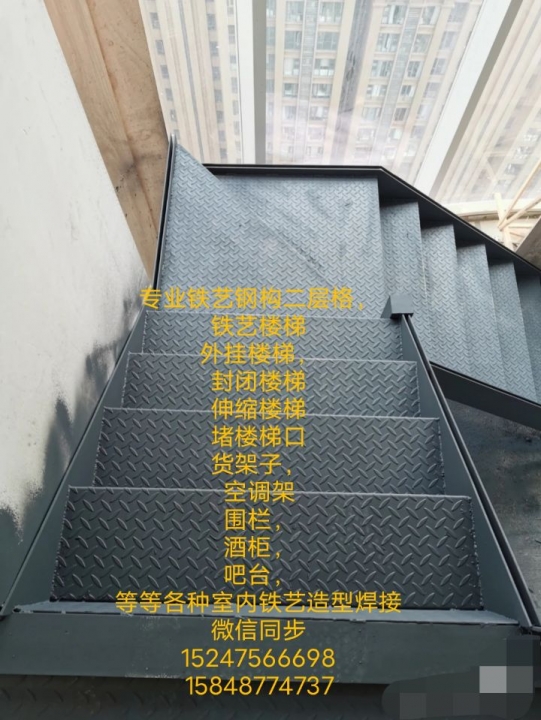 专业楼梯,钢构二层格,楼梯,封闭楼梯,外挂楼梯,消防楼梯,伸缩楼梯,堵楼梯口,液压隐藏门,围栏。护栏。空调架,货架子,。酒柜。吧台。扶手,牌匾,等等各种铁艺造焊接造型微信同步15247566698