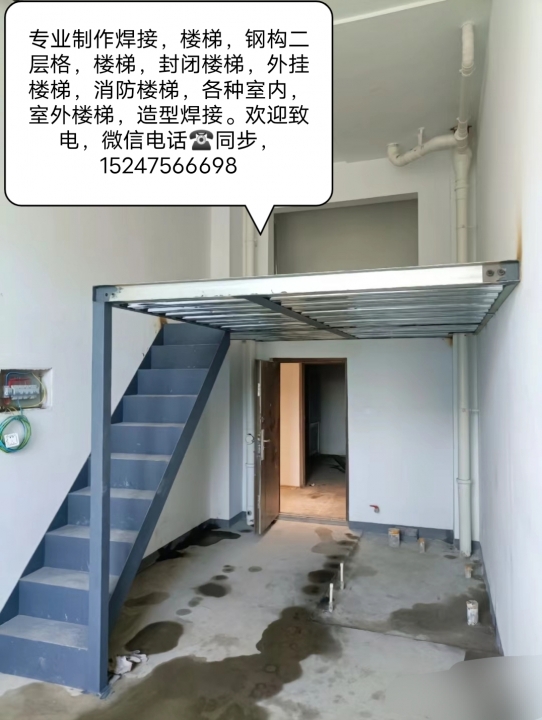 本人专业承揽各种 铁艺楼梯,钢构二层格,封闭楼梯,外挂楼梯,伸缩楼梯,消防楼梯,液压隐藏门,货架子,空调架,堵楼梯口,酒柜,造型吧台,铁艺围栏,铁艺大门,等等各种室内,室外楼梯,钢构二层格,各种铁艺造型焊接,欢迎新老客来电话 微信同步15247566698