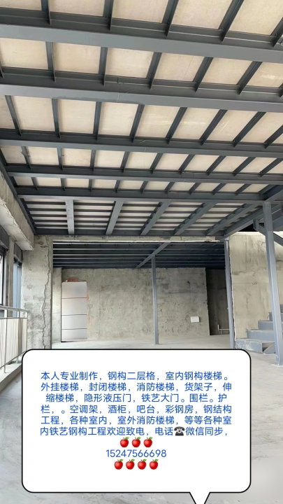 本人专业承揽各种 铁艺楼梯,钢构二层格,封闭楼梯,外挂楼梯,伸缩楼梯,消防楼梯,液压隐藏门,货架子,空调架,堵楼梯口,酒柜,造型吧台,铁艺围栏,铁艺大门,等等各种室内,室外楼梯,钢构二层格,各种铁艺造型焊接,欢迎新老客来电话 微信同步15247566698