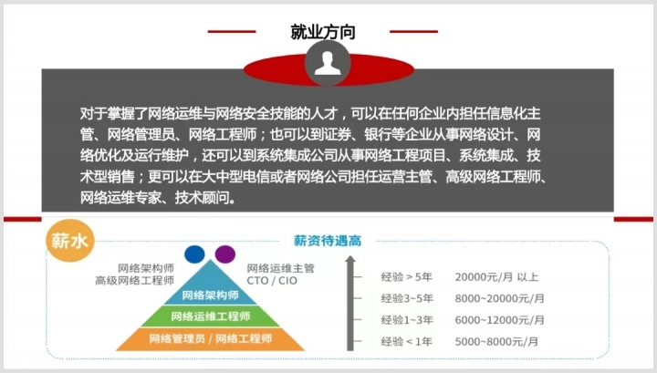 了解并掌握网络设计和规划,网络配置与部署,网络监控和管理,安全管理。