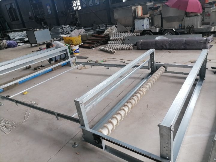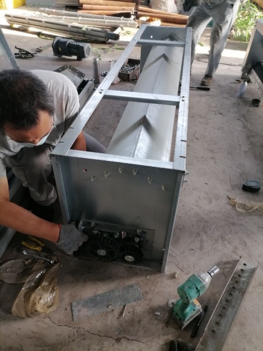 皮带式清粪机,传送带式清粪机,履带式清粪机,说的是一种东西,是和以前老式的刮粪板式的清粪机完全不同的养鸡出粪设备,传统的刮粪机是用绳子拉着刮粪板,在事先挖好的粪沟里面,把鸡粪拉到鸡舍外面,用一个大粪池堆积,但大的缺点是用水冲,否则刮不干净,但湿鸡粪存在粪池里面,终也是要排到外面,或者是到河道里面,或者用人拉走,但这种鸡粪一般没人要。鸡粪还有一种处理方法,就是用一台干湿分离机,把鸡粪弄成干的,然后再卖出去。但湿的一部分还是要留在粪池里面,终还是污染了地下水,这也是失败的。后来又发明了一种,叫零排放的养鸡模式,这种还是做粪沟,但粪沟做的比较深,一般两米以上,是养一批鸡以后再清粪,就是一年半再清粪,这种出粪的方式也叫楼房式养鸡,这种清粪的方式夏天还可以,因为风机要一直开,所以气味不是很大,但一到冬天就完了,冬天不能开风机,而且鸡粪会发酵,鸡舍内的臭味会很大,鸡就容易出现呼吸道的问题,终也是失败的。